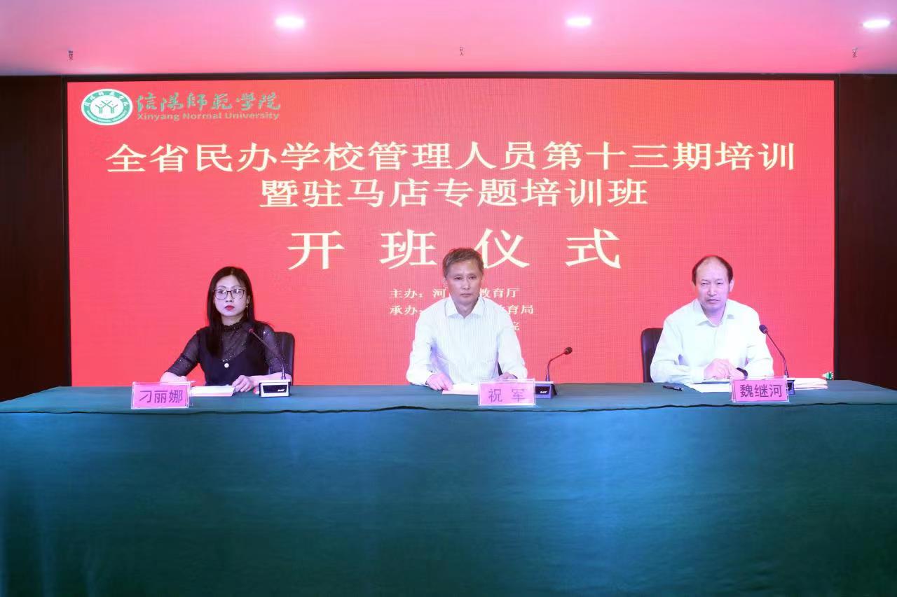4月20日-23日,由省教育厅主办,我校和驻马店市教育局联合承办的全省民办学校管理人员第十三期培训暨驻马店专题培训班在信阳成功举办。我院院长祝军、驻马店市教育局二级调研员魏继河出席开班仪式,驻马店市161所民办学校举办者参加开班仪式。仪式由我院副院长刁丽娜主持。