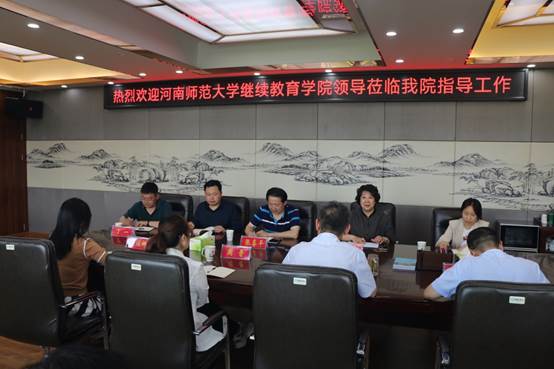 祝军对河南师范大学同行的到来表示热烈欢迎,详细介绍了我校继续教育办学历史、发展现状和现有机构设置、人员配备、管理体制等情况。李津对我校继续教育发展取得的成绩给予高度评价,并介绍了河南师范大学6165cc金沙总站基本情况和办学现状。学院党总支书记周晋与张喜平就党建思想政治工作进行了探讨。双方就加强高等学历继续教育管理、教育教学、经费投入、国际合作办学、非学历继续教育工作等进行了广泛深入交流。