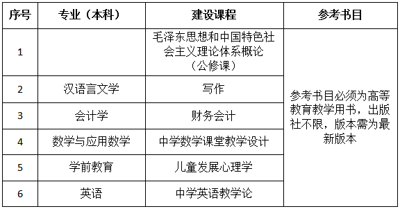 2.在线开放课程申报程序为:个人申请,学院审核推荐,学校组织专家评审,立项。课程建设采取限额推荐方式。相关教学单位针对每门课程可审核推荐1-2个课程建设团队,并由学校审核批准1个团队承担课程建设任务。