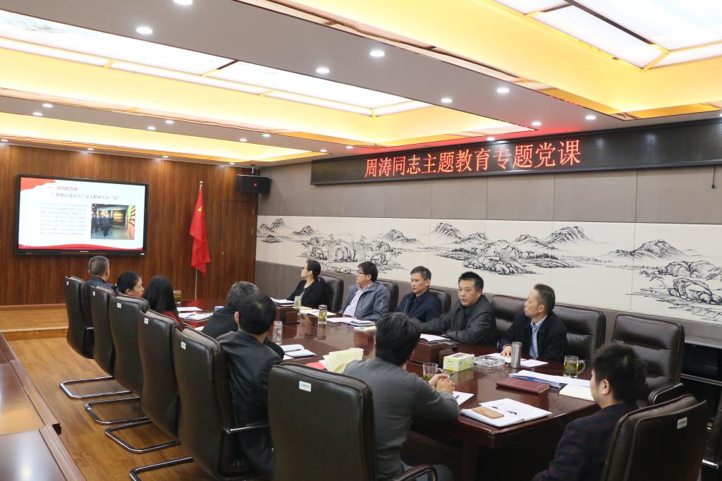 党总支书记周涛以《牢记宗旨坚定信仰,践行初心担当使命》为题,结合习总书记来革命老区新县瞻仰鄂豫皖革命纪念馆的重要讲话精神,以大别山革命根据地28年红旗不倒、《雪山忠魂》--最后的党费和江姐、方志敏等革命先烈英雄故事、林俊德等新时代楷模故事以及中国革命事业取得的举世瞩目成就等为线索,从“信仰的力量”“坚定四个自信”“践行初心使命”三个方面,教育引导广大党员干部坚定信仰信念、强化党的意识和使命意识,进一步树牢“四个意识”、坚定“四个自信”、做到“两个维护”,守初心、担使命,把立足岗位履职尽责融入中华民族伟大复兴事业之中,为学校事业发展多做贡献。